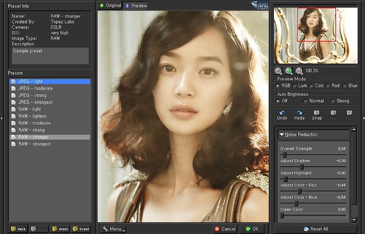 Topaz DeNoise 4.1 takes a completely new approach to noise reduction that is different from any other method currently available. The underlying algorithm behind DeNoise 4 examines the entire photo when processing and can therefore eliminate noise while preserving and even enhancing important image features - unlike other software which may often blur and soften detail. Topaz DeNoise 4 also includes highly effective color noise handling.